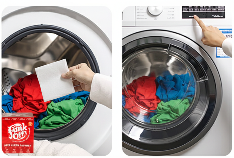 Apart from the convenience of just tossing a sheet into your washer and not having to carry a heavy bottle that leaks and drips when you wash, Funk Off! is pre-measured for the right amount for typical load sizes. It rinses thoroughly unlike pods, liquids, and powder.